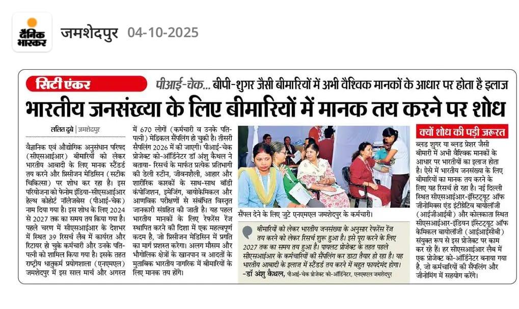 ADVT. NO. 08/2025 - ENGAGEMENT OF PART TIME DOCTOR (ALLOPATHIC SYSTEM) AT CSIR-NML - REG.(284976)